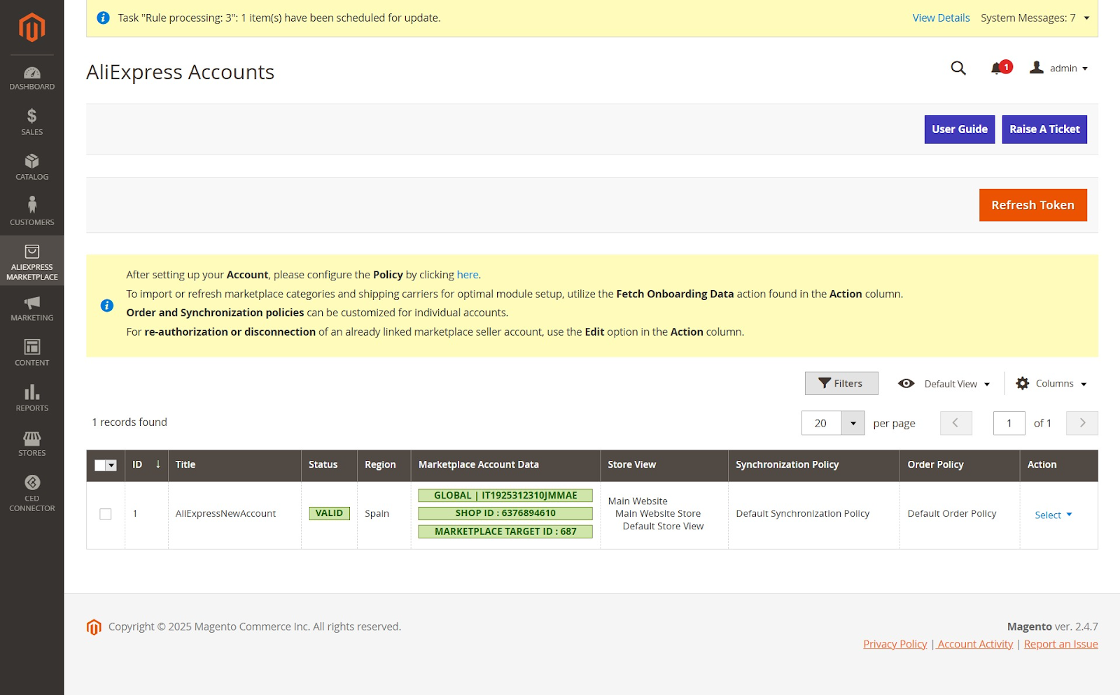 Disconnect an existing AliExpress account from Magento if you no longer wish to use it.