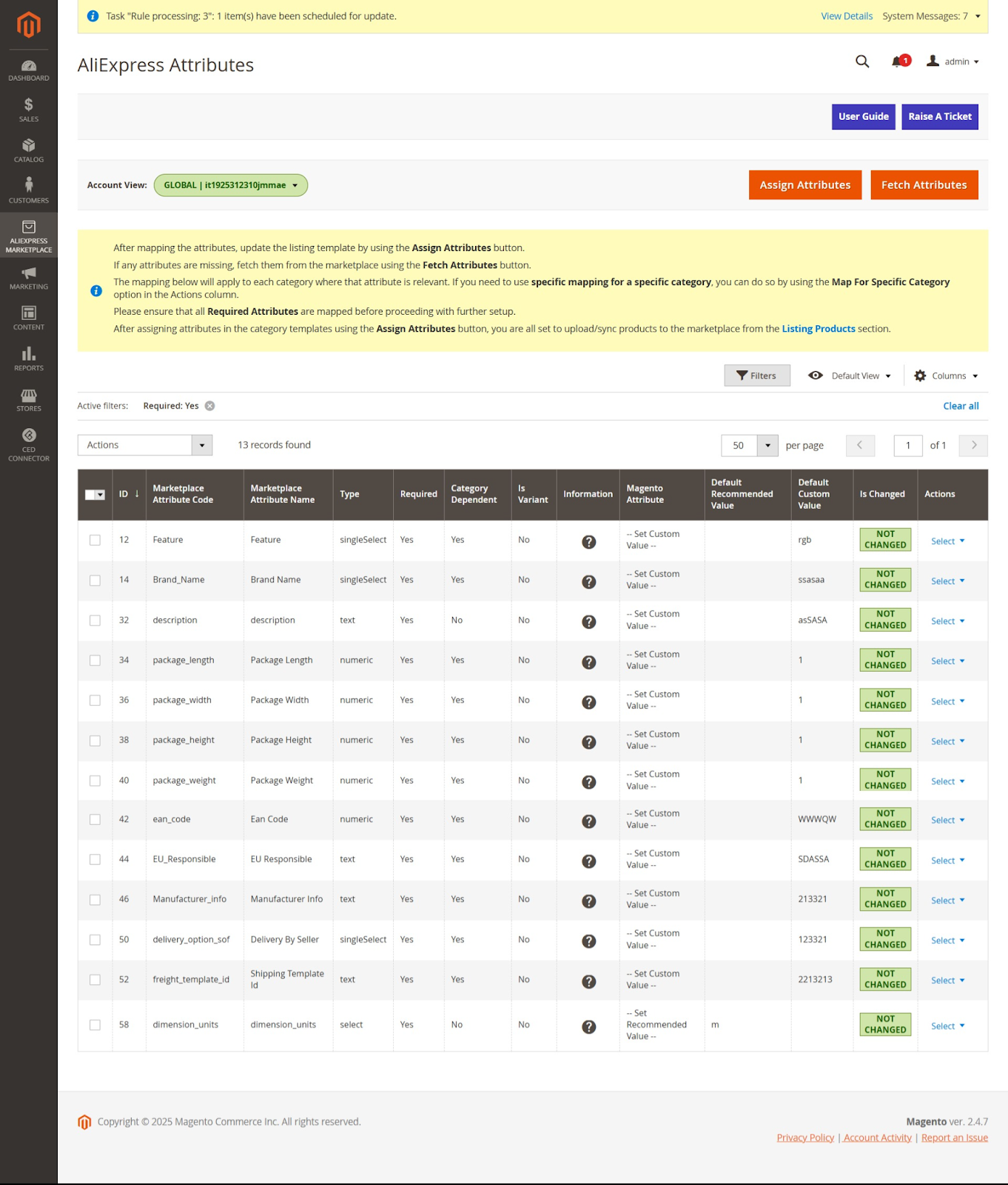 Magento Attribute: The Magento attribute mapped with the AliExpress attribute. You can also set a custom value here.