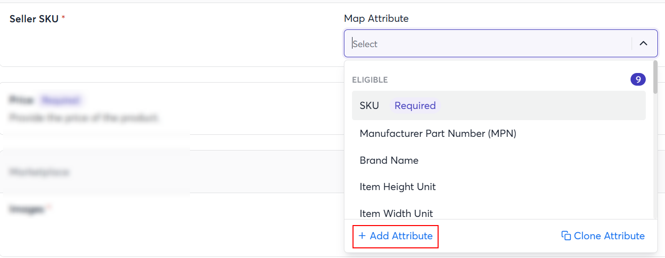 - Click Add Attribute available in the dropdown menu of the respective attribute