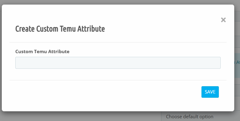 A pop-up will appear, allowing you to manually input custom values for Temu attributes.
