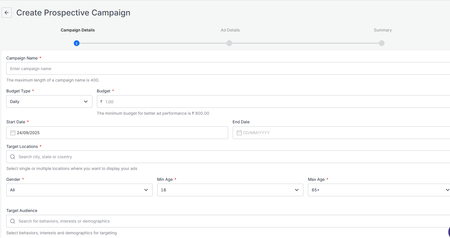 The Prospective Campaign helps you reach new audiences who are most likely to convert. The first step is to define your Campaign Details: