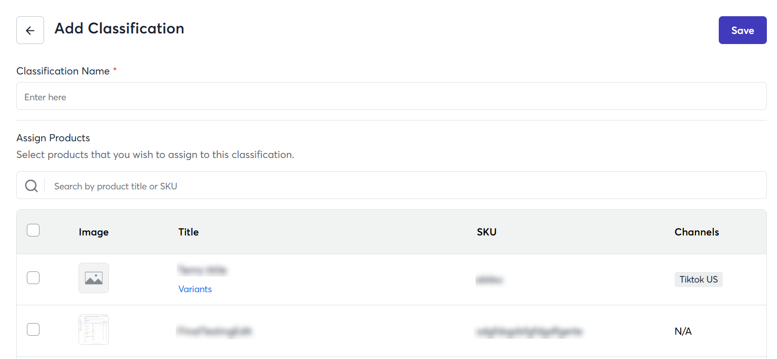 - Enter Classification Name: Use a clear, easy-to-recognize name that reflects the type of products it includes.