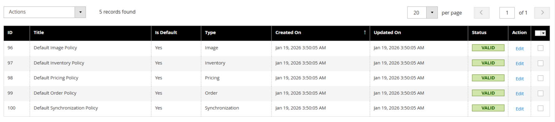 - Is Default: Shows whether the policy is the system default.