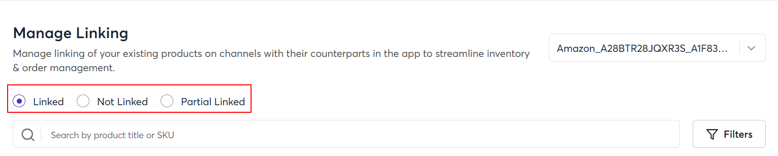 You can also use the Search bar to find products directly through the title or the SKU to further streamline your linking operations.